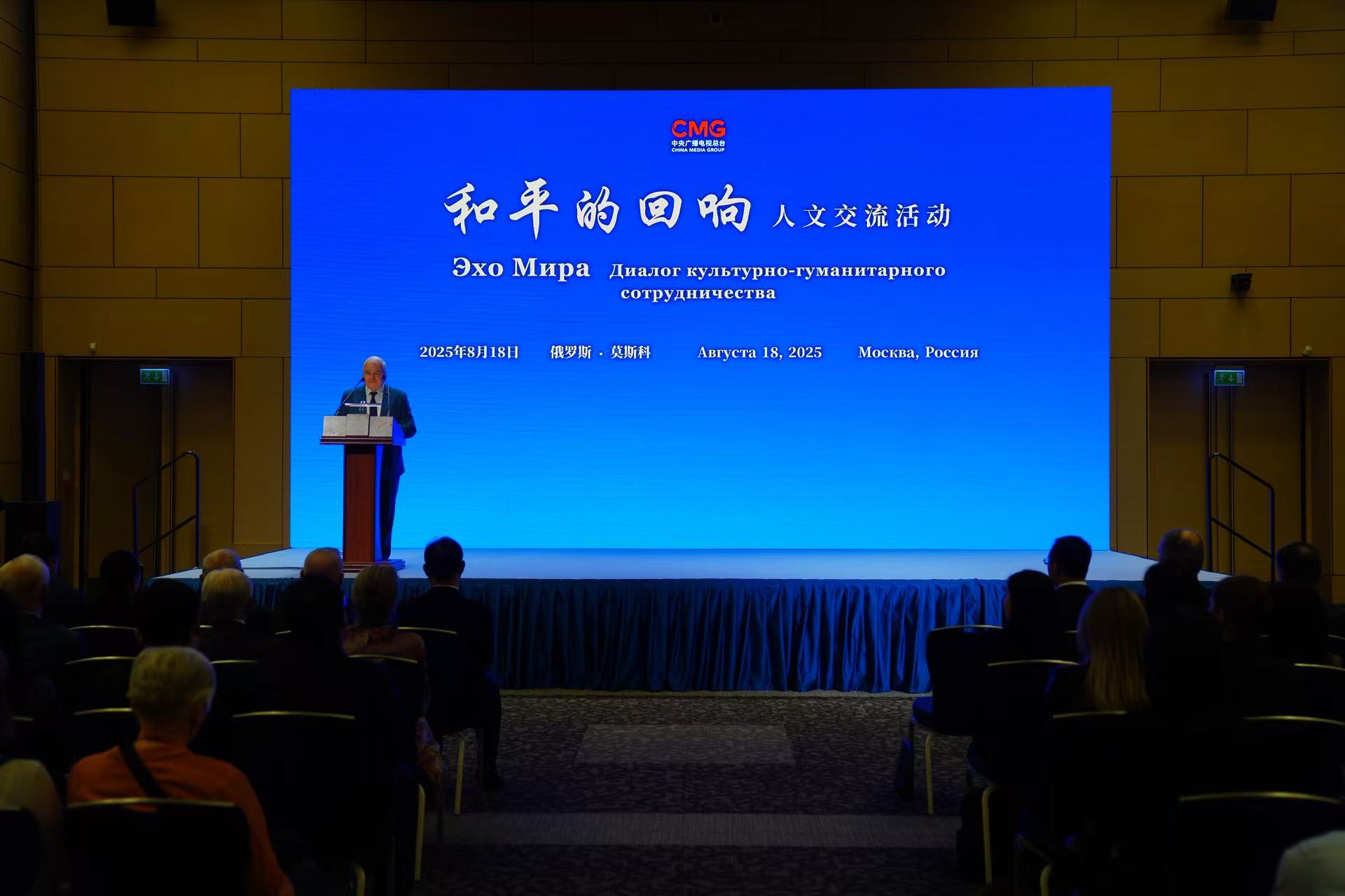 В честь 80-летия Победы в Войне сопротивления китайского народа японским захватчикам и Мировой антифашистской войне Евразийское бюро Медиакорпорации Китая (CMG) совместно с посольством КНР в России провело в Москве торжественное мероприятие под названием «Эхо мира – Диалог культурно-гуманитарного сотрудничества». Оно состоялось 18 августа в Центре Международной Торговли (ЦМТ).